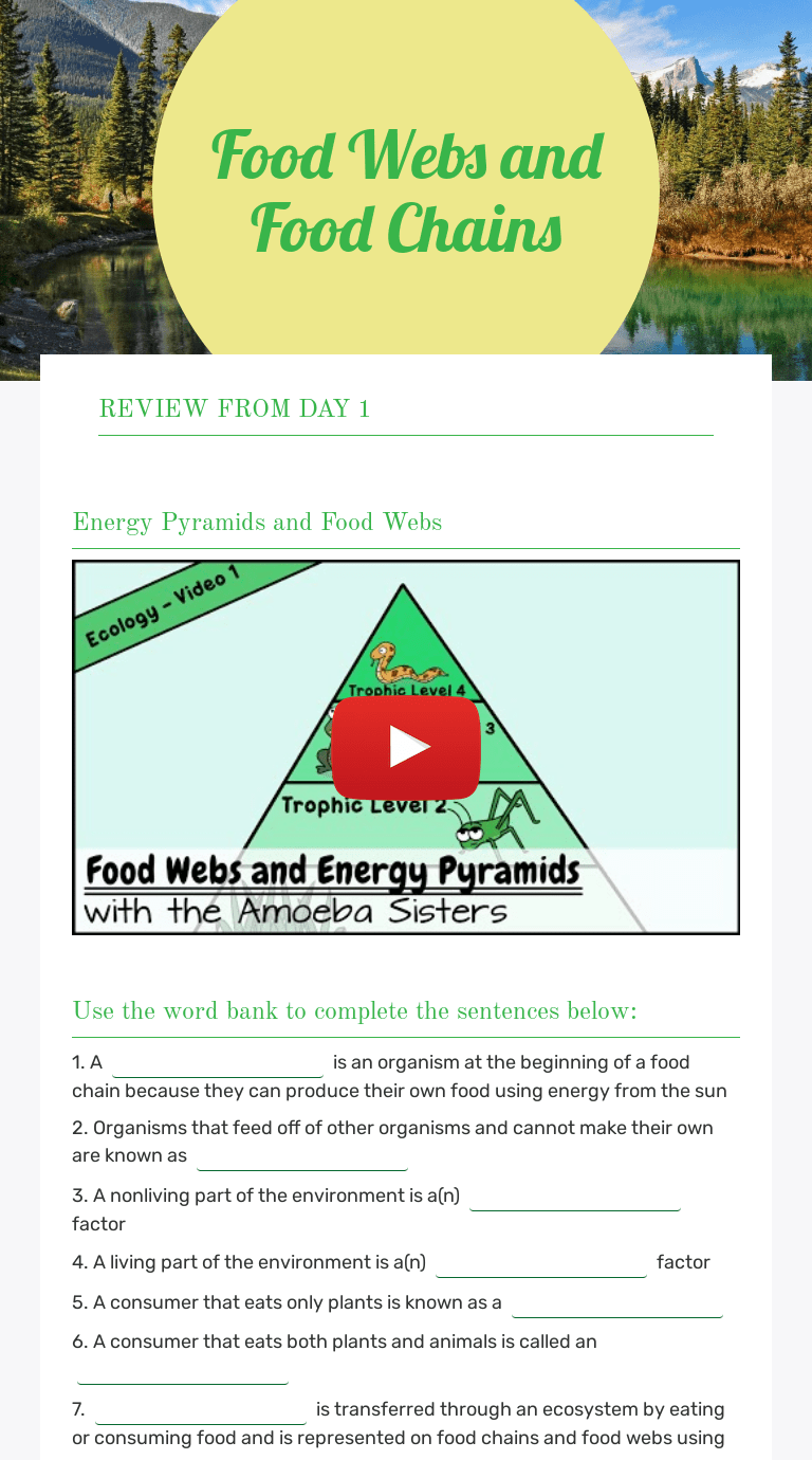 Amoeba Sisters Food Chain Worksheet Answer Key : 1 /